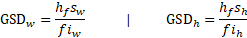 where GSDw and are the width and height of the pixel footprint (m), respectively,