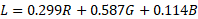 grayscale retaining its luminance, as the weighted average of the three channels: